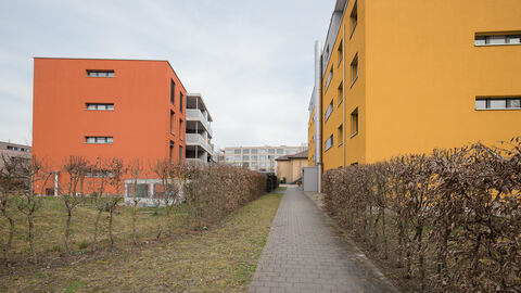 Die Überbauung Gleis 2 in Lenzburg umfasst 4 Mehrfamilienhäuser, Bauherrin war im Jahr 2010/2011 die CoOpera Sammelstiftung PUK. Die Farbtonauswahl war mutig. Der Putzaufbau auf Aussenwärmedämmung mineralisch, aber dünnschichtig. Im Gegenlicht der Sonne sind alle Stösse der EPS-Platten sichtbar, die sonst üblichen Algen und Pilzverschmutzungen sucht man jedoch vergebens. Die Metalloxid-Pigmente, wie auch die hydroaktive Silikatoberfläche bieten hier optimale Voraussetzungen und eine giftfreie Alternative zu den sonst üblichen Standards auf Dispersions- oder Silikonharzbasis.