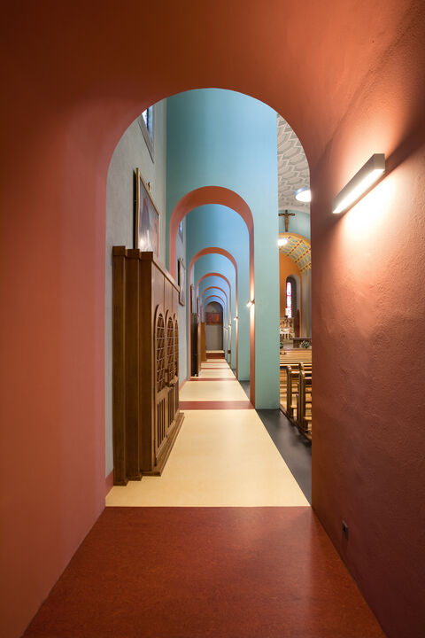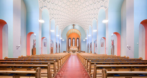 Ein Beispiel für den ausgezeichneten Einsatz von NOVALIN ist die Pfarrkirche Wünnewil bei Flamatt. Die originale Farbigkeit der Fassung aus dem Jahre 1932 sollte wieder aufleben. Dabei musste die Materialwahl und die Pigmentierung möglichst originalgetreu sein und den Anforderungen der Dankmalpflege entsprechen. NOVALIN hat diesem Profil bestens entsprochen. Die Betonkirche erstrahlt wieder in ihrer damaligen Pracht, Feierlichkeit und Würde. Ganz besondere Beachtung verdient auch die aus 365 Betonkasseten erbaute Decke. Ein Besuch der Pfarrkirche Wünnewil lohnt sich.