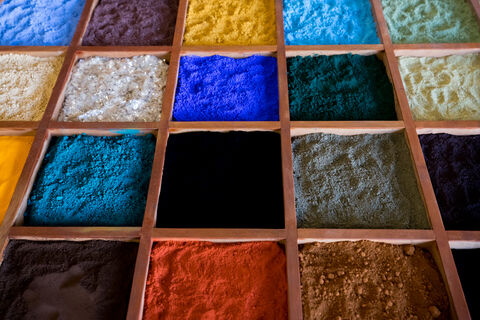 Ganze 367 Pigmente und Farbstoff e werden im ersten Teil lexikalisch abgehandelt, eine Fülle von Informationen über alle Facetten dieser Stoffe mit wohlklingenden Namen wie Auripigment, Neapelgelb und Kirschkernschwarz. Jedes Farbmittel ist als pulverförmiger Stoff in hoher Qualität abgebildet und mit Abbildungen handgefertigter Farbmuster illustriert.
